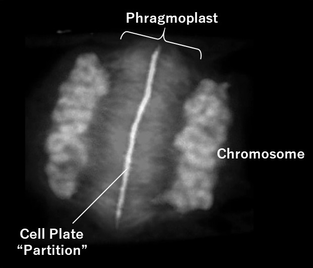 During plant cell division, a partition called a cell plate appears between two chromosomes and expands to divide the cell into two. This cell plate is created by the phragmoplast, which appears only during cell division and contains microtubules and actin filaments. Microtubules were known to play a major role in the formation of the phragmoplast, as destroying them with chemicals results in non-formation of the cell plate. On the other hand, the role of actin filaments was not well understood, since their destruction does not cause any noticeable change in phragmoplasts or cell plates.