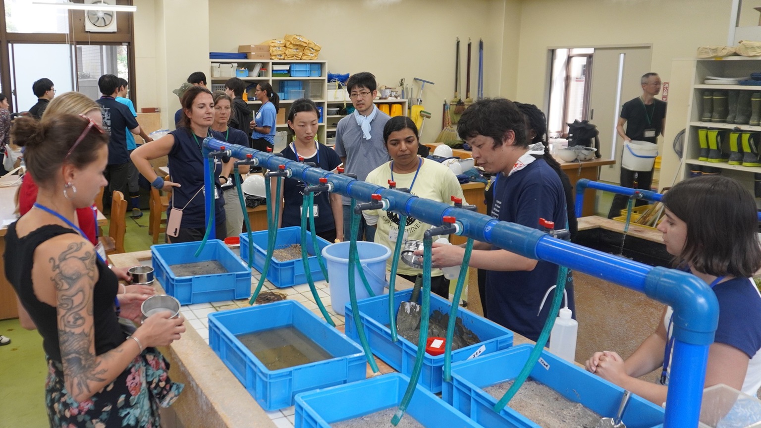 The Aitsu Marine Station is located on Maejima Island, part of the Amakusa Islands in Kumamoto. This area is known for its rich marine environment, ideal for marine study. As Prof. Shimanaga explained, the unique tidal range—up to 4 meters—creates varying sediment conditions, which helps enhance nutrient mixing and contributes to the diverse habitats essential for studying meiofauna.