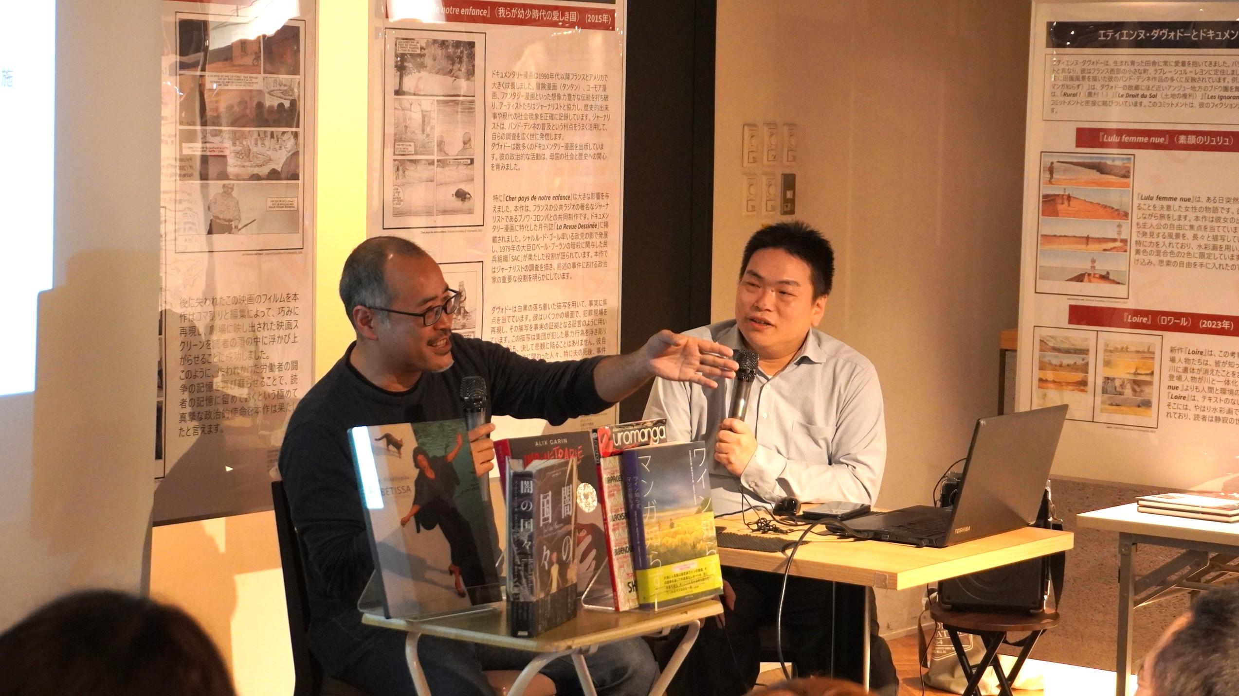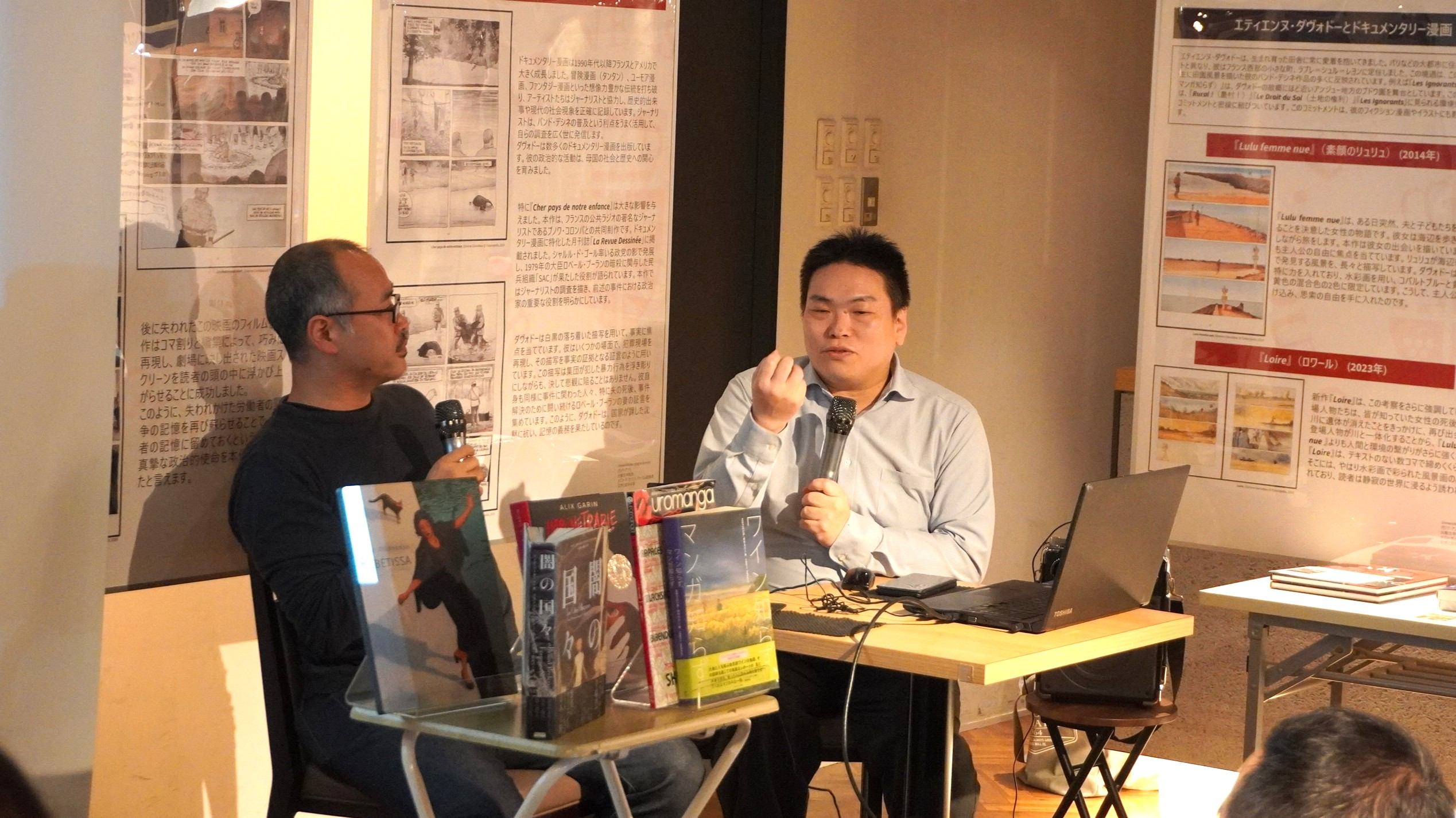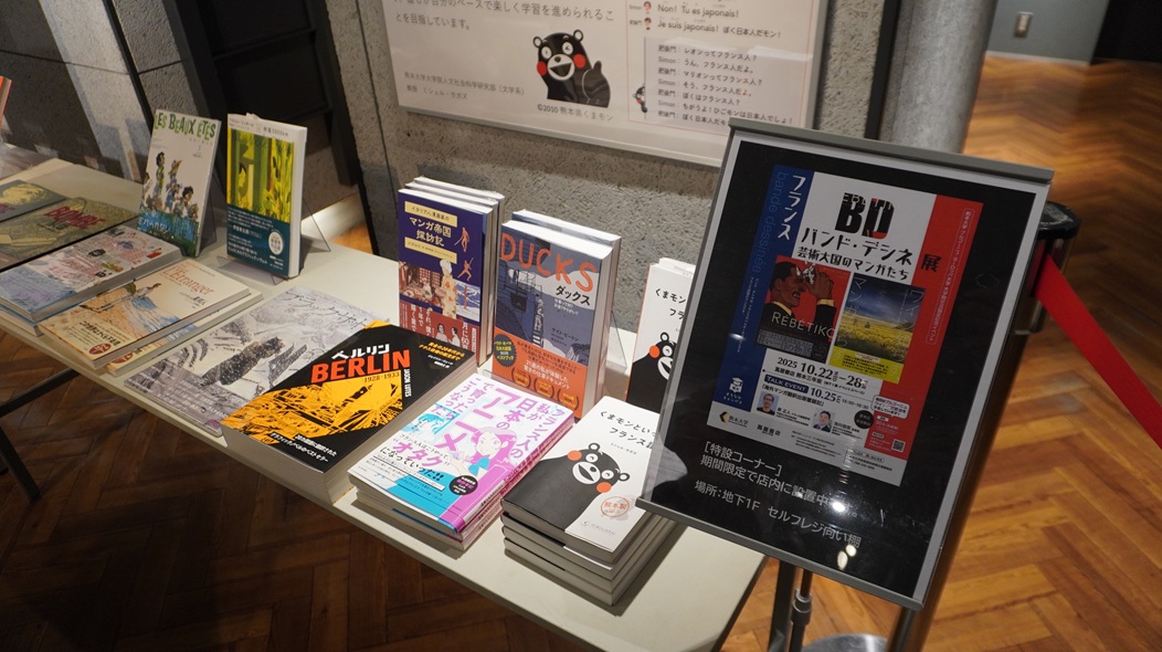 Kumamoto University, in collaboration with Newco One Co., Ltd.*, hosted the "French Bande Dessinée Exhibition – Manga from the Artistic Nation" from Oct. 22 to Nov. 4, offering a captivating insight into bandes dessinées (French comics) and their connection to Japan. On October 25th, the event featured a special talk "Struggles in Translating and Publishing Overseas Manga", bringing together experts to discuss the challenges of translating and promoting manga on a global scale. These events were organized to commemorate the recently signed partnership agreement between Kumamoto University and Université Bourgogne Europe, which took place just one day prior. The exhibition and talk served as a celebratory addition to this new collaboration between the two universities.During the event, Associate Professor Yoshihiro Ikegawa from the International Manga Research Center for Manga Studies, attached to the Faculty of Letters, Kumamoto University, and Masato Hara, a translator of French bandes dessinées and adjunct lecturer at Waseda University, shared their experiences and insights on the complexities of translating and publishing manga abroad. Their interactive and conversational style created an engaging atmosphere, making it feel like a friendly exchange between two experts, drawing the audience into a lively and informative discussion.