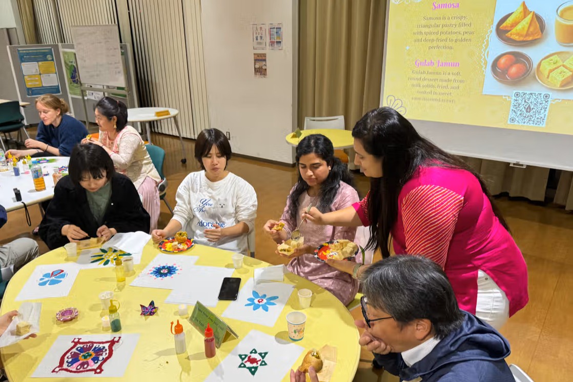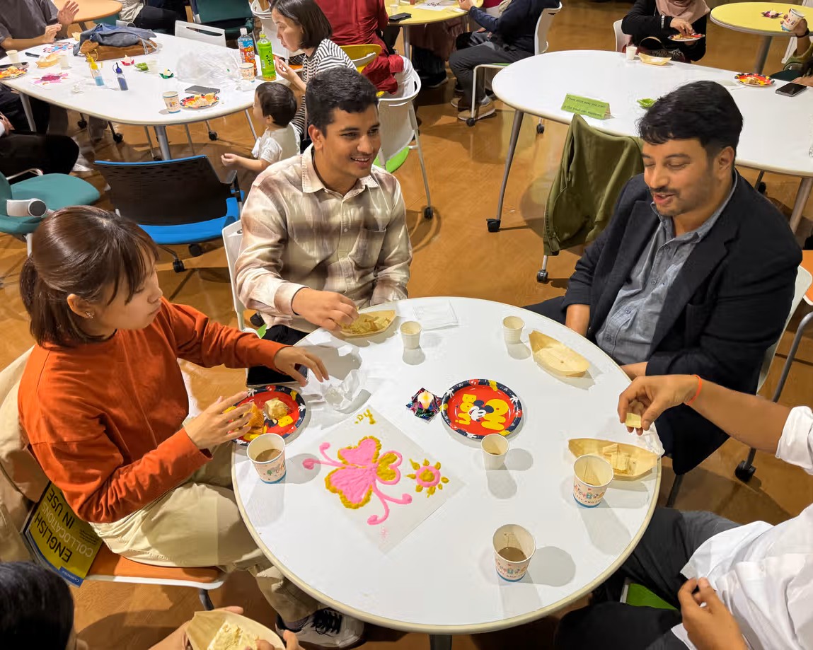 After the activity, everyone gathered to enjoy traditional Indian snacks jointly provided by the Indian Embassy and Kumamoto University, including samosas, chai, gulab jamun, and soan papdi. Sharing these festive treats sparked relaxed conversation and created a warm, friendly atmosphere.