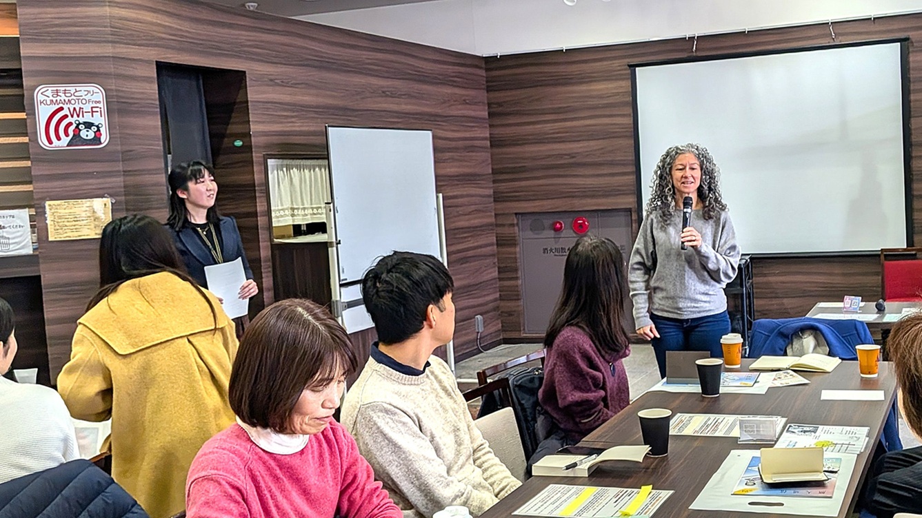 On January 24, 2026, Kumamoto University, in collaboration with the Mansfield Foundation, held the "Mansfield Café" at the Kumamoto City International Center as part of their joint initiatives. The event, now in its third time, was a great success, with 23 participants joining and engaging in lively conversations.The event featured Ms. Nicole Ibrahim and Mr. Stephen Money, both current U.S. federal government employees and 29th cohort Mansfield Foundation Fellows. They are currently in Japan, participating in a fellowship program that involves undergoing training at various Japanese government ministries.