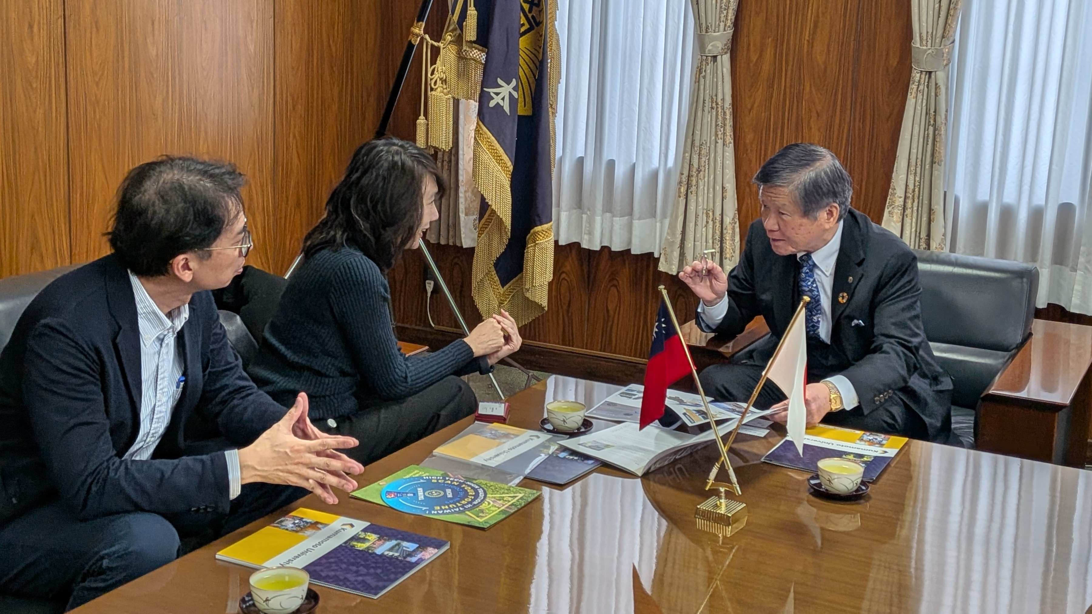 On January 27, 2026, a delegation from National Chung Hsing University (NCHU), Taiwan, visited Kumamoto University. The delegation was led by Distinguished Professor Mon-Shu Ho from the i-Center for Advanced Science and Technology (iCAST), as well as the Department of Physics and the Institute of Nanoscience, and Distinguished Professor Chih-Feng Huang from the same iCAST and Department of Chemical Engineering.The delegation paid a courtesy visit to Kumamoto University’s President, Hisao Ogawa, and held a meeting with Executive Vice President Jun Otani and other faculty members. During the meeting, they presented various student exchange programs, many of which are supported collaboratively by government, industry, and academia. They highlighted NCHU’s strengths and its focus on semiconductor talent development, expressing a strong desire to share these resources with Kumamoto University. The visit aimed to promote mutual collaboration and foster communication in the semiconductor field, particularly in human resource development.