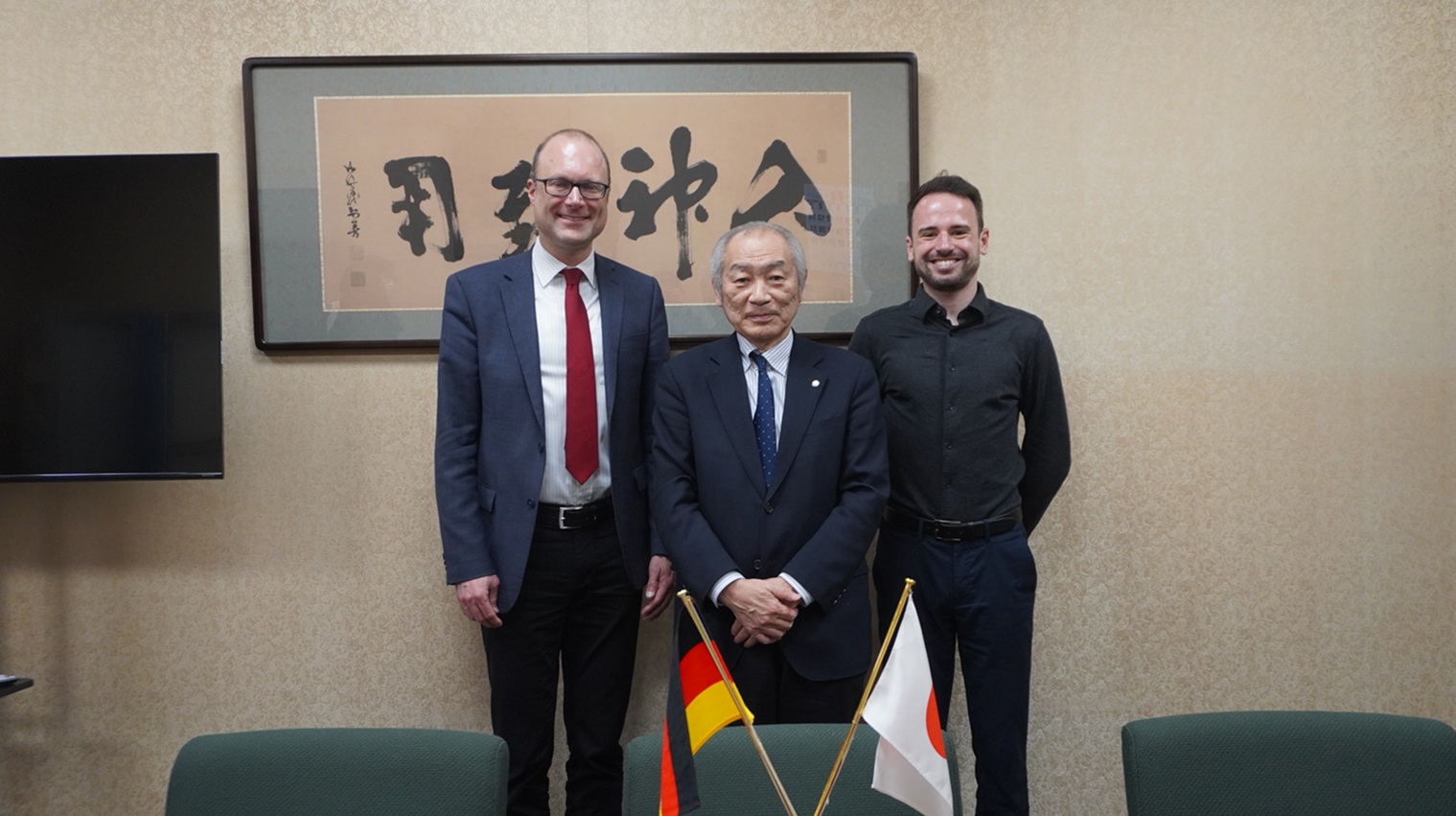 Group Photo (From left: Prof. Schiller, Executive Vice President Otani, and Dr. Roessler)
