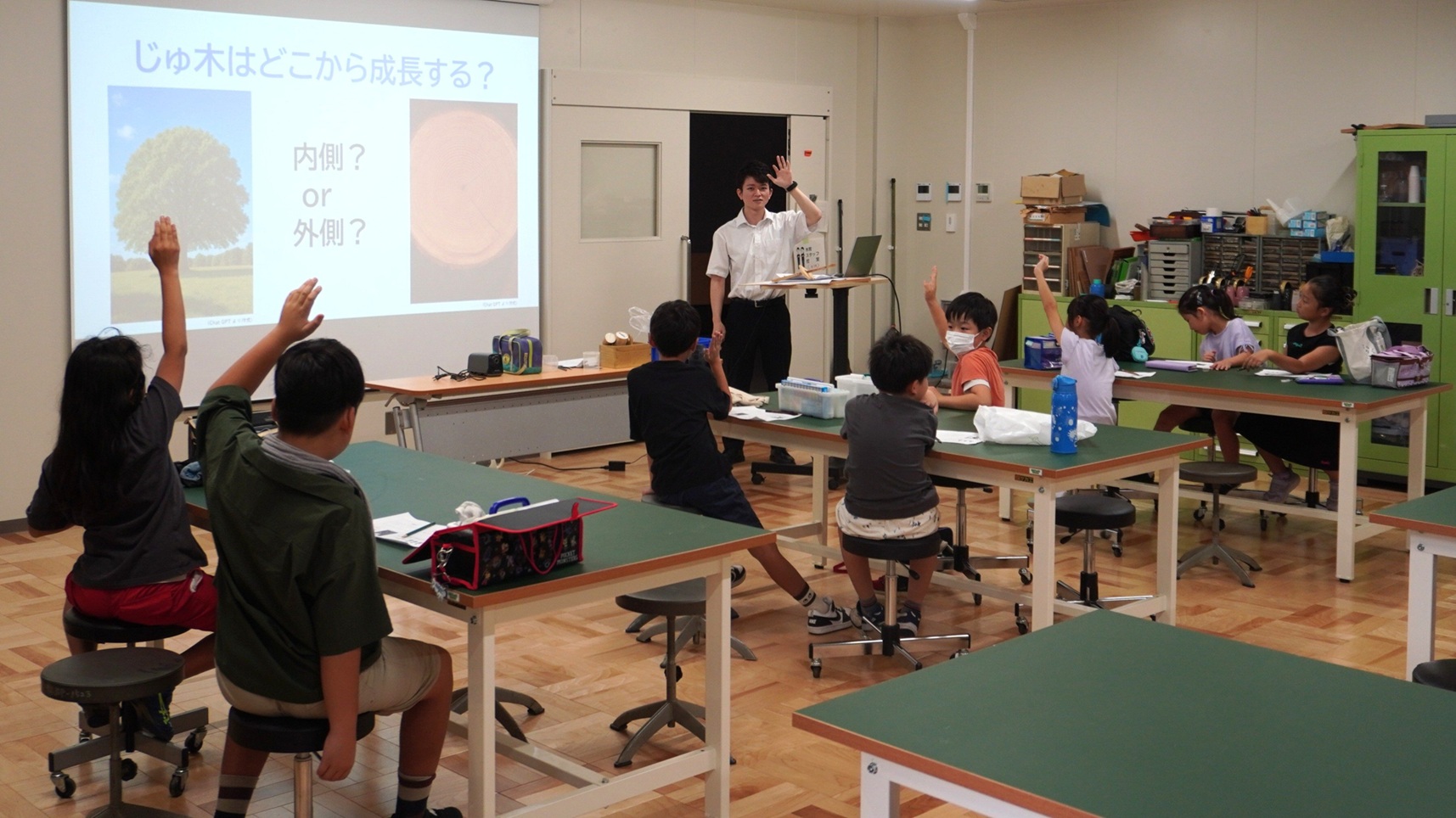 On October 5, 2025, Kumamoto University’s Faculty of Education hosted a special Wood Education Workshop in celebration of World Wood Day 2025, titled “Fun Wood Stories and Crafting Class”. The event brought together 22 students—11 from grades 3 and 4, and 11 from grades 5, 6, and junior high school—for a hands-on exploration of wood, nature, and sustainability. Led by Professor Hirotsugu Taguchi from Faculty of Education, the workshop aimed to engage the next generation in environmental awareness through creative activities.Workshop for Elementary Students (Grades 3-4)